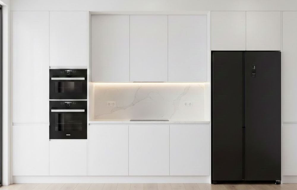 De Fitelli KV436BL1 Amerikaanse side-by-side koel-vriescombinatie is een ideale oplossing voor huishoudens die behoefte hebben aan veel opslagruimte, moderne technologie en een luxe uitstraling. Met een hoogte van 177 cm, een breedte van 90 cm en een royale netto inhoud van 442 liter biedt deze koelkast volop ruimte voor al je verse en diepvriesproducten. Dankzij de compacte diepte van 59 cm sluit hij perfect aan op het aanrecht en past hij naadloos in moderne keukens.