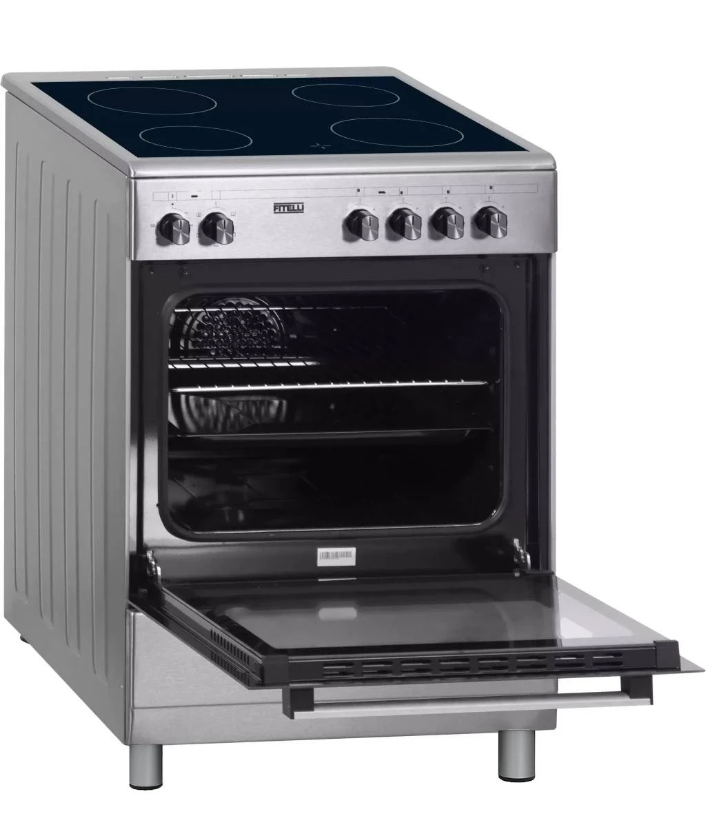 De Fitelli FK6001RVS beschikt over 4 kookzones en een heteluchtoven. Of je nu een heerlijke taart wilt bakken, een stuk vlees wilt roosteren of lekker low en slow een stoofpotje wilt maken, voor de FK6001RVS is dat allemaal geen enkel probleem. De bediening werkt heel eenvoudig door middel van draaiknoppen aan de voorzijde. De keramische kookplaat is eenvoudig schoon te houden. De FK6001RVS heeft een multifunctioneel ovensysteem: onder- en bovenwarmte hetelucht circulatie . In de oven heb je de beschikking over ovenverlichting en een min-max oventemperatuur 40-240ºC. De oven heeft een inhoud van maar liefst 56 liter, genoeg dus voor een heerlijke pizza of eigengemaakte ovenschotel.
